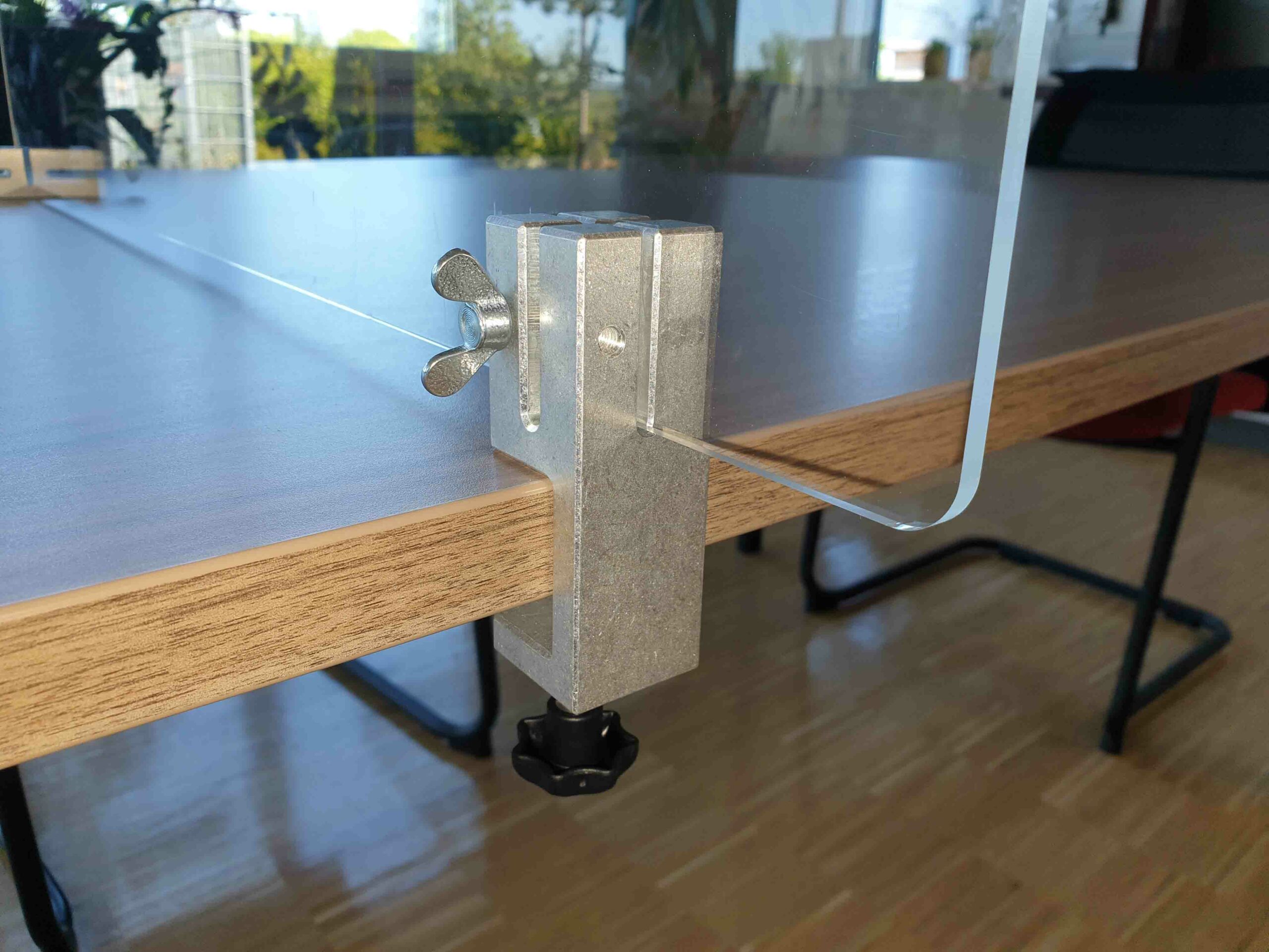 Set mit 2 Tischhalterungen (auch zum Nachrüsten bestehender bei uns gekaufter Spuckschutzwände).