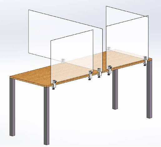 Einfache Montage Ihrer Spuckschutzwand am Schreibtisch oder Arbeitsplatte.